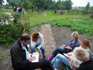 Het is onze specialiteit om tijdens een organisatieleerproces de ‘binnenmensen’, met een voorkeur voor het gebruiken van het hoofd en het hart, ook mee naar buiten te nemen zodat hun handen actief gebruikt worden. Handen staan letterlijk voor vasthouden, voor be-grijpen. We zien dat de deelnemers actief aan de slag gaan met elkaar en met het vergroten van hun zelfbewust- en omgevingsbewustzijn.